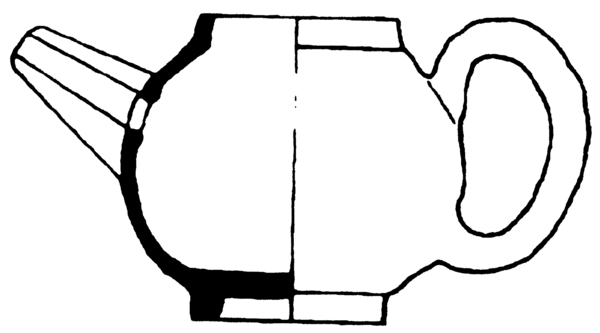 | 4b | bolle theepot met lage opstaande rand, standring |