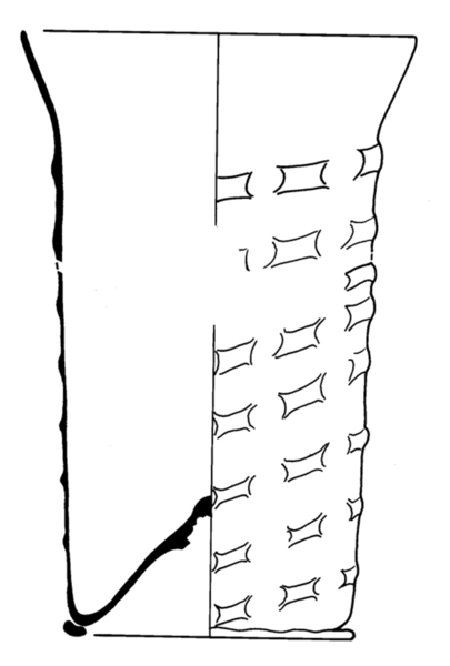 | 4b | cilindrische of licht conische beker met wafelpatroon, uitstaande lip, opgestoken bodem met pontilmerk, voetring |