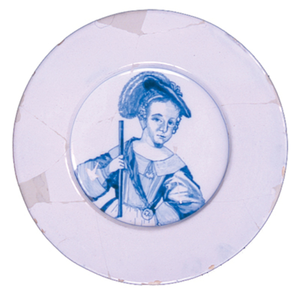| 5c decoratie | jeugdportret van stadhouder Willem III, op achterzijde jaartal 1664 blauwe beschildering |