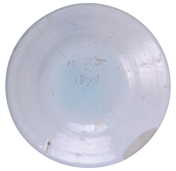 | 5c | kleurproef, spiegel, cherubijn, vlag: gestileerde bloemen, uitgevoerd in paars, groen, geel en rood, bij verschillende tinten rood cijfers 3, 4, 6, en 7, op achterzijde opschrift: 15 apr(il) 1679 polychroom |
