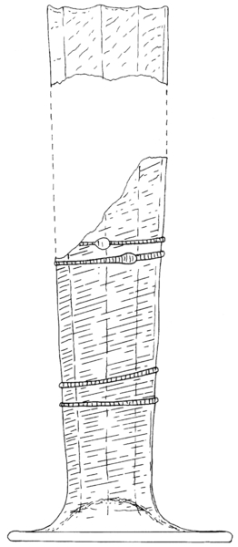 | 4b | zeven- of achtzijdig stangglas, plaatselijk omwonden met geribde draden (a) |