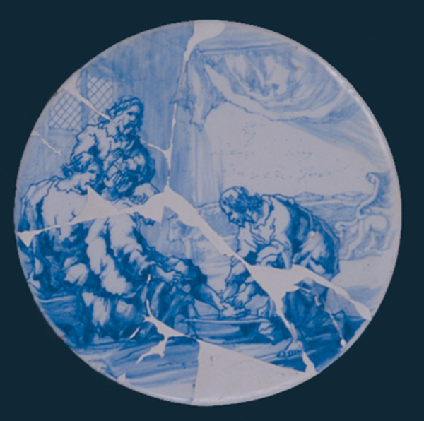 | 5c | voorzijde: Christus wast de voeten van Zijn discipelen, achterzijde jaartal: 1664 blauwe beschildering |