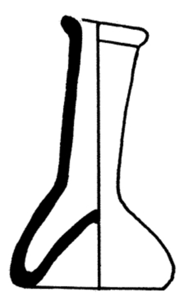 | 4b vorm | kleine halfbolvormige fles met lange hals, opgestoken bodem met pontilmerk |