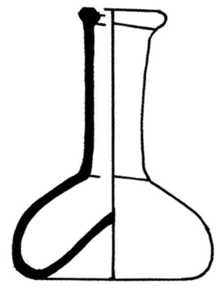 | 4b vorm | bolvormige fles met lange hals en uitstaande lip, opgestoken bodem met pontilmerk |
