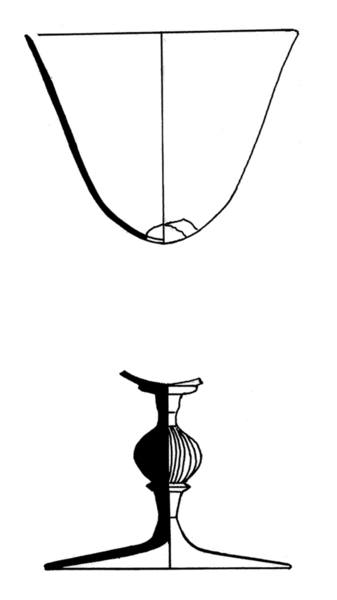 | 4b | cilindrisch, trechtervormig of komvormig kelkglas met of zonder afgeronde bodem (ook met verticaal ribbenpatroon) met geribde holle nodus- of balusterstam, met één of meer schijfjes, schijfvormige voet met pontilmerk |