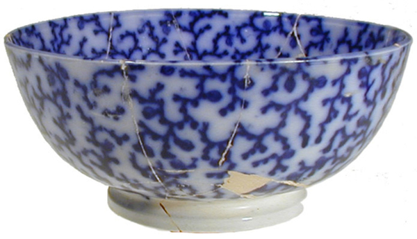 | 5c | buitenzijde: drukdecor ranken, blauw op wit; vloeiblauw, binnenzijde: drukdecor ranken blauw op wit; vloeiblauw onderglazuur blauw |