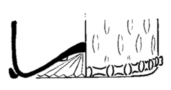 | 6a | opgestoken, geribde voetring, pontilmerk |