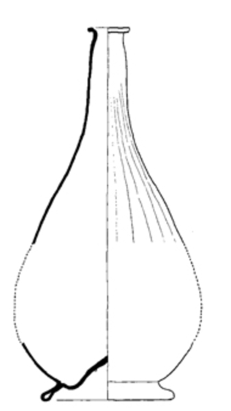 | 4b | druppelvormige fles, opgestoken ingevouwen voet met pontilmerk, ook met verticaal of diagonaal ribbelpatroon |