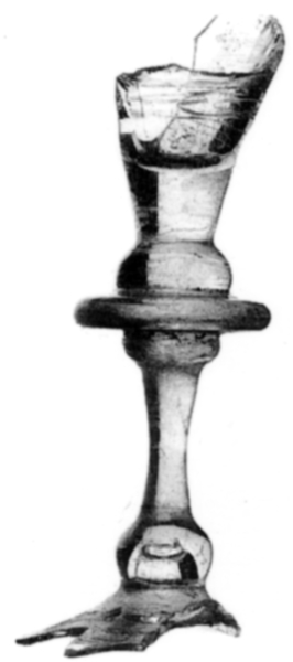 | 4b | trechter- of tulp- of trompetvormig kelkglas met dikwandige bodem, massieve stam met drie geledingen en schijfje, ook met luchtbel, voet met pontilmerk |