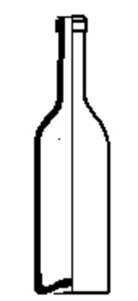 | 4b vorm | slanke cilindrische wijnfles met lange hals, afhangende afgeronde schouder, afgewerkte platte draad onder de lip, vormgeblazen, licht opgebolde bodem |
