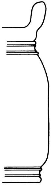 | 4b vorm | tonvormige pot met uitgebogen verdikte afgeronde rand, ribbel op randaanzet en op onderzijde buik, standvoet |