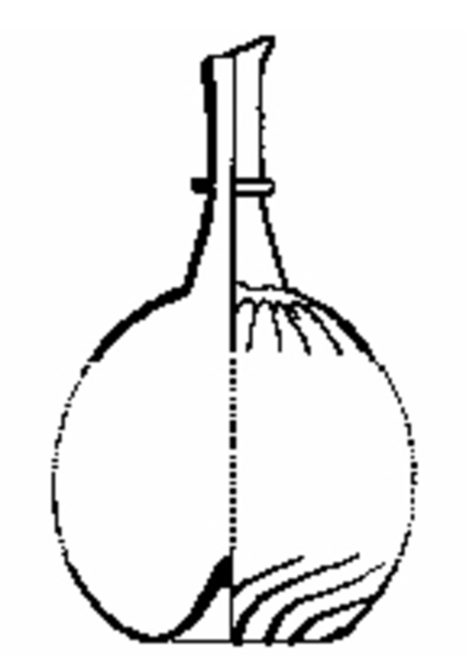 | 4b | kleine ovale fles met of zonder draad rondom hals, beneden opstaande ribbels in 'Mezza Stampaura' die naar boven toe abrupt naar rechts of links draaien, opgestoken bodem met pontilmerk ook met oren |